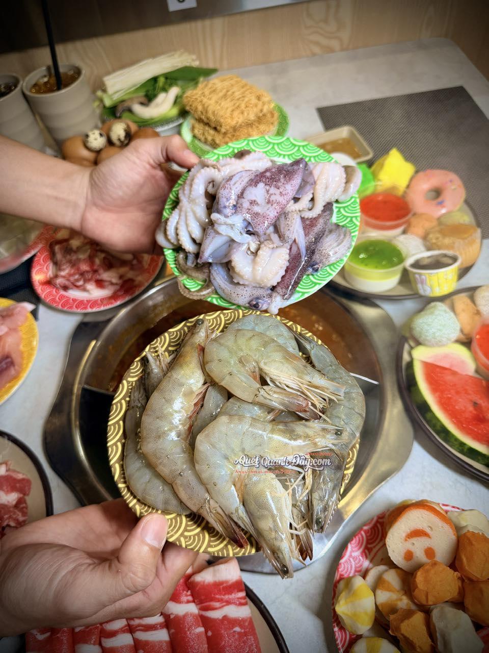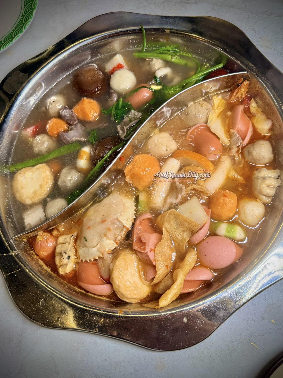 Chỉ 169k – với hơn 60+++ loại topping , thịt bò cao cấp, hải sản tươi ngon, vay cá hồi na uy, Rau , củ , nấm đa dạng, và vô số topping thả lẩu,…. cùng với 4 vị lẩu đặc trưng: