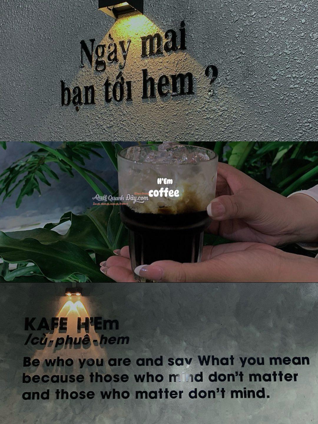 “Một góc nhỏ, một tách cà phê, và một chút bình yên giữa những bộn bề “ H'Em Coffee - Nơi để bạn thưởng thức nước ngon, view check in xịn xò bậc nhất Cà Mau Mời Bạn ghé Hem nhé! Quán mở cửa vào lúc: 8:00-22:00 Địa chỉ: số 796, Tạ Uyên, Phường 1, Thành phố Cà Mau Số điện thoại: 0939094586
