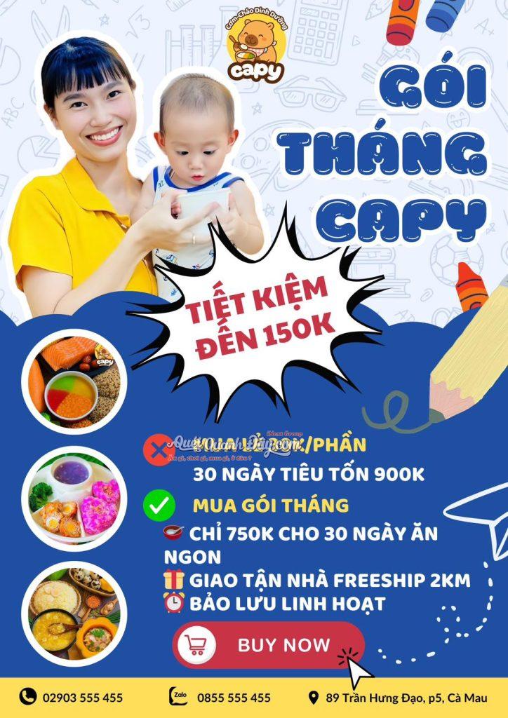 Ghi chú: Gói Tháng Capy: TIẾT KIỆM #150K ❌ Mua lẻ 30K/phần, 30 ngày tốn #900K ✅ Mua Gói Tháng chỉ #750K cho 30 ngày ăn ngon! 🛵Giao tận nhà FREE SHIP 2KM! 📋Bảo lưu linh hoạt 3 ngày chẳng lo bỏ phí! ‼️ Lưu ý: Hết 30 ngày và 3 ngày bảo lưu gói sẽ reset lại từ đầu. 💳 Nạp Ví Capy: TIẾT KIỆM #150K - KHÔNG GIỚI HẠN THỜI GIAN 💰Nạp ví 1 triệu tặng thêm 15% (150k) trực tiếp vào ví! 🎁 📦 Ưu đãi FREE SHIP 2KM, KHÔNG HẾT HẠN cho đến khi bạn dùng hết tiền trong Ví!