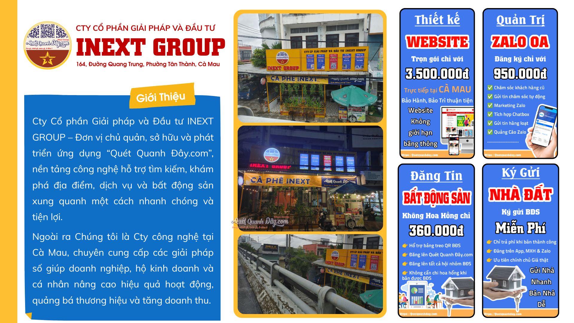 Cty Cổ phần Giải pháp và Đầu tư INEXT GROUP – Đơn vị chủ quản, sở hữu và phát triển ứng dụng “Quét Quanh Đây.com”, nền tảng công nghệ hỗ trợ tìm kiếm, khám phá địa điểm, dịch vụ và bất động sản xung quanh một cách nhanh chóng và tiện lợi.