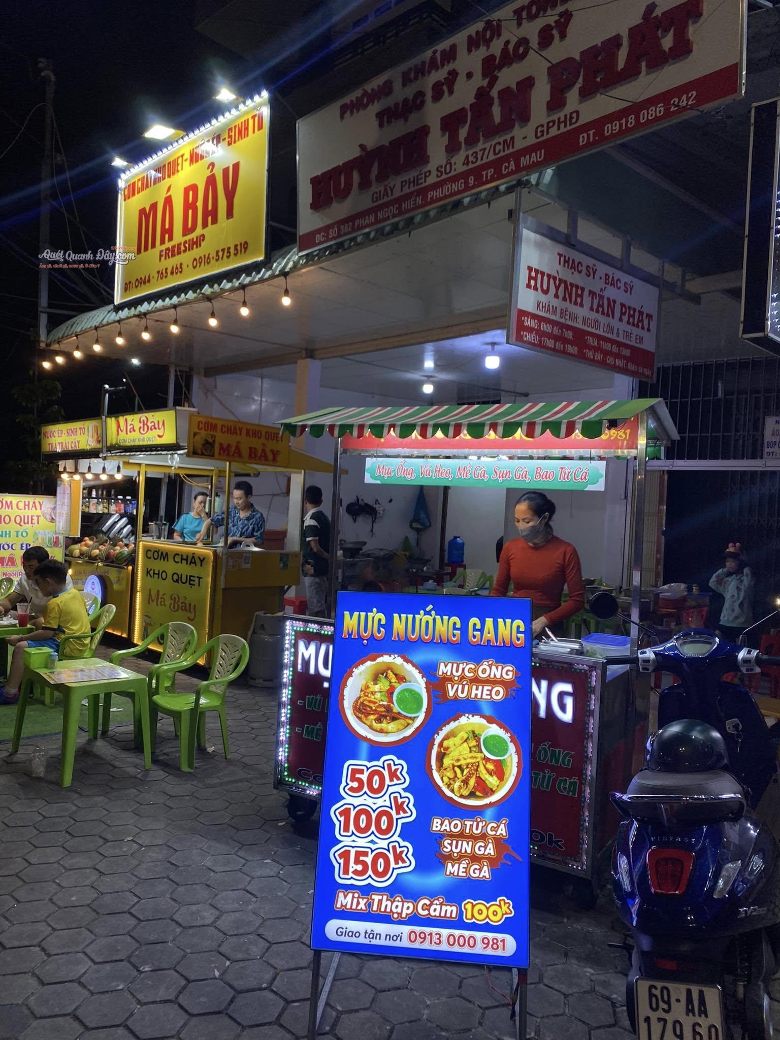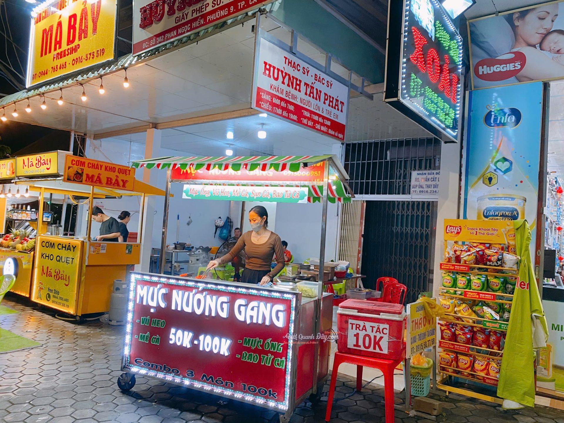 Mực Nướng Gang – Phan Ngọc Hiển, Phường 9, Cà Mau” là một quán ẩm thực hấp dẫn, nổi bật với món mực nướng thơm ngon đậm đà.