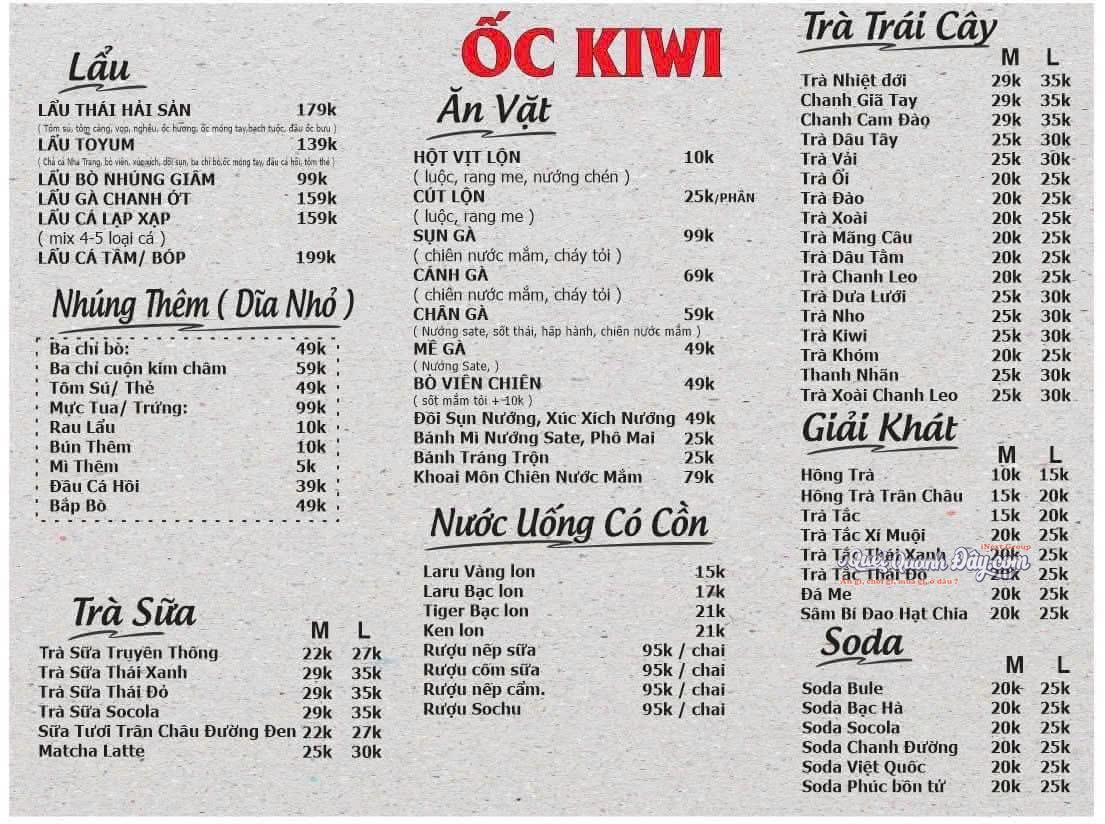 Quán ỐC – LẨU NƯỚNG KIWI ship tận nhà nội ô Cà Mau,